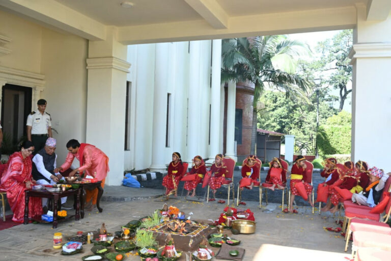 यस क्रममा राष्ट्रपति पौडेलले आज महानवमीको दिन शितलनिवासमै नवकन्याहरुको पूजा गरेका छन् ।