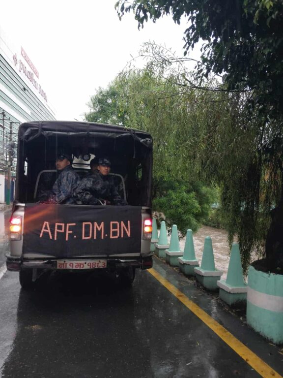 सशस्त्र प्रहरीले काठमाडौं उपत्यकाका विभिन्न जोखिम सम्भावित क्षेत्रमा पुगेर त्यहाँका बासिन्दाहरू लाई सुरक्षित रहन माइकिङ गरिरहेका छन् भने तत्काल उद्धारको आवश्यकता परेमा सशस्त्र प्रहरी बलको टोल फ्री नम्बर १११४ मा फोन गर्न समेत माइकिङ मार्फत सूचित गराइरहेको छ ।