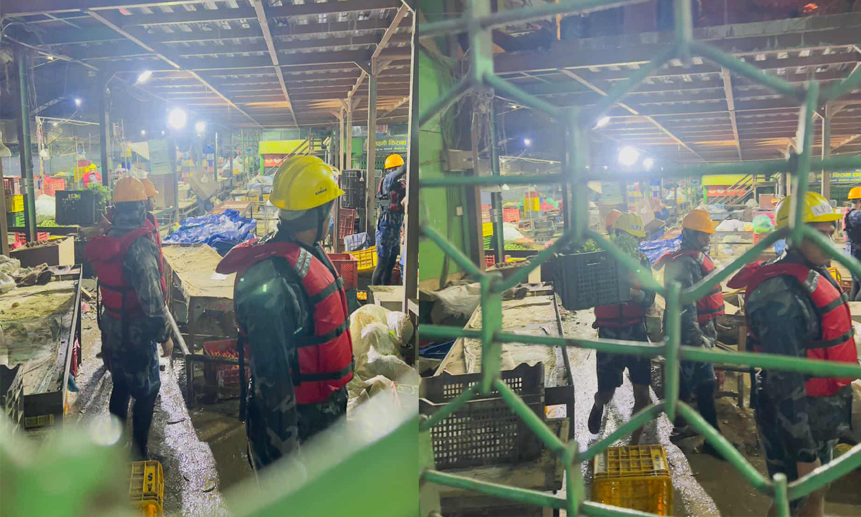 तरकारी बजारभित्र पानी पसेपछि यति बेला तरकारी बजार खाली गराइएको छ ।