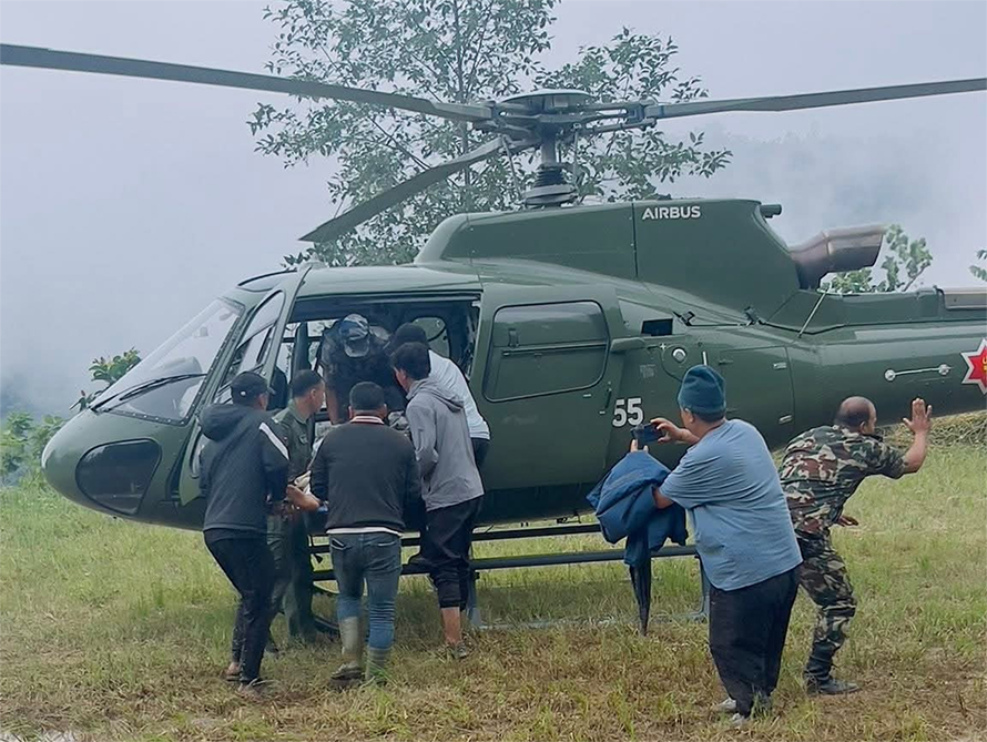 इलाम । इलाम जिल्लामा आएको बाढीपहिरोका कारण घाइते भएका सर्वसाधारणलाई नेपाली सेनाको हेलिकप्टरमार्फत उद्धार गरिएको छ ।