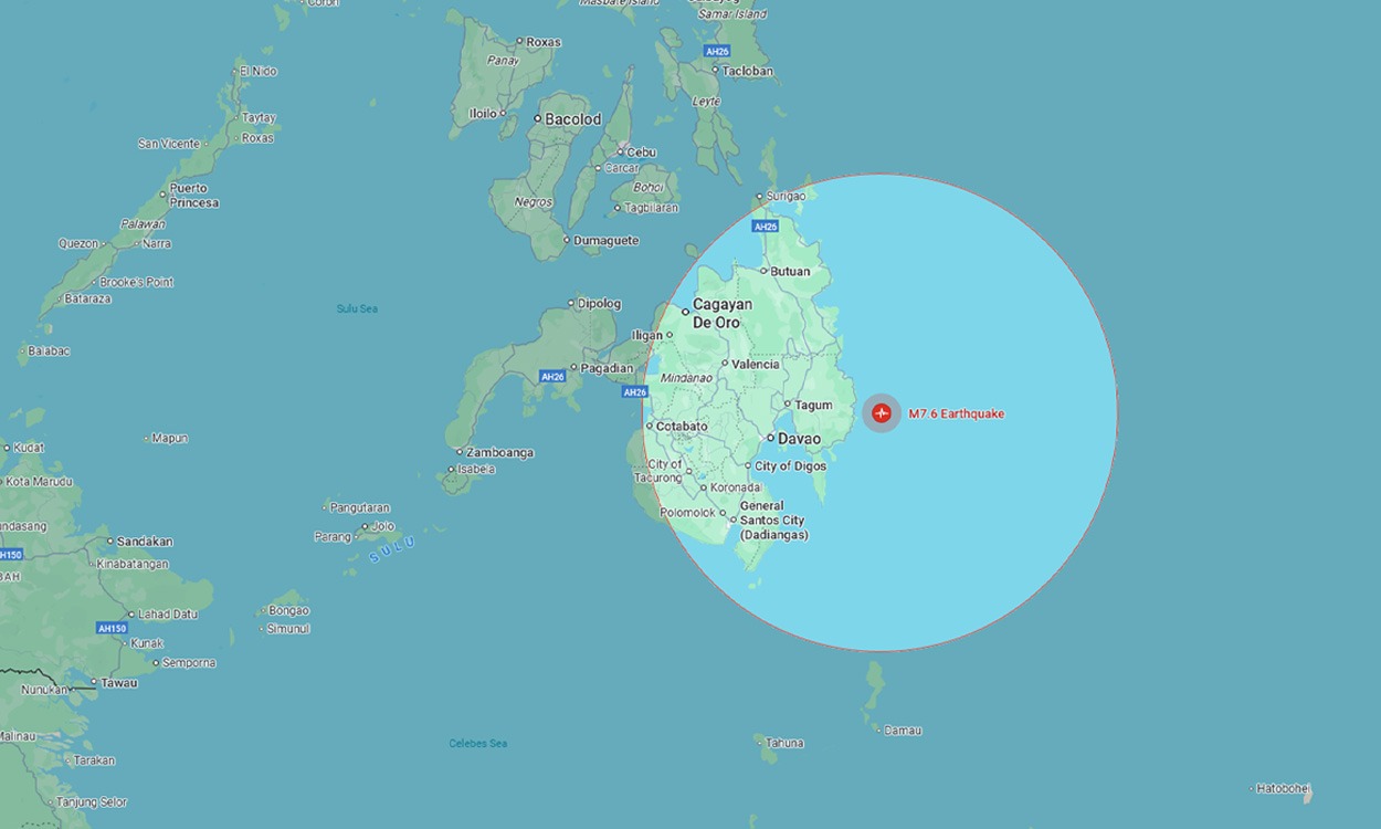 भूकम्पको केन्द्र फिलिपिन्सको दक्षिणी भाग मिन्डानाओ क्षेत्रमा रहेको बताइएको छ । भूकम्पको धक्का तीव्र महसुस भएकाले स्थानीय बासिन्दा घरबाट बाहिर निस्किएका छन् ।