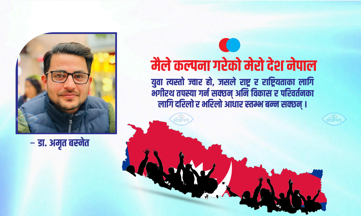 नेपाल एक बहुजातीय, बहुभाषिक, बहुधार्मिक, बहुसांस्कृतिक एवं भौगोलिकरूपले विविधतायुक्त राष्ट्र हो । हाम्रो देश नेपाल हिमालयको फेदमुनि अवस्थित छ । जसलाई देवभूमि पनि भनिन्छ । यदि विश्वमा प्रलय भएर संसार ध्वस्त भयो भने वा विश्वका मानिसहरू सखाप भए भने तिमीहरू बाँच्नुपर्छ भनेर नेपाल र नेपालीलाई देवी देवता, भगवानहरुले आशीर्वाद, वरदान दिएको किम्बदन्ती छ । हाम्रो देश नेपाल प्राकृतिक रूपले सम्पन्न, पूर्ण छ र धर्तीको स्वर्गको टुक्राको रूपमा पनि हेरिन्छ । त्यसैले नेपाल हिमालयको स्वर्ग हो । देश सुन्दर बनाउन, मन पनि सुन्दर हुनुपर्दछ ।