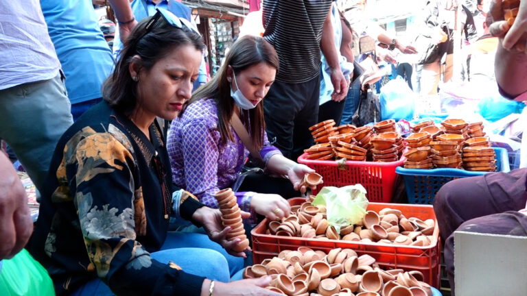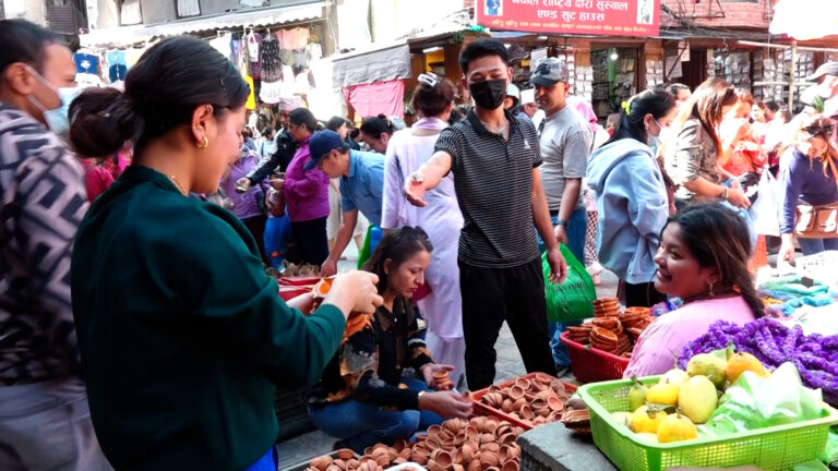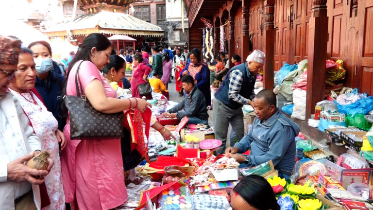 काठमाडौं । नेपालीहरूको दोस्रो ठूलो चाड तिहार नजिकिँदै गर्दा राजधानीका पुराना बजारहरू असन, इन्द्रचोक र न्युरोड तिहारको रौनकले भरिएका छन् । बिहानैदेखि भाइमसला, फूलमाला, रंग, लक्ष्मीको फोटोदेखि , पाला जस्ता आवश्यक सामान किन्न आउने मानिसहरूको भीड बढ्न थालेको छ ।