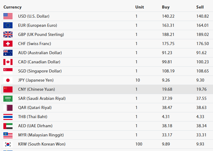 राष्ट्र बैंकले हङकङ डलर एकको खरिददर १८ रुपैयाँ ०४ पैसा र बिक्रीदर १८ रुपैयाँ १२ पैसा, कुवेती दिनार एकको खरिददर ४५८ रुपैयाँ ४४ पैसा र बिक्रीदर ४६० रुपैयाँ ४० पैसा, बहराइन दिनार एकको खरिददर ३७१ रुपैयाँ ९६ पैसा र बिक्रीदर ३७३ रुपैयाँ ५५ पैसा, ओमनी रियाल एकको खरिददर ३६४ रुपैयाँ १९ पैसा र बिक्रीदर ३६५ रुपैयाँ ७५ पैसा रहेको छ । भारतीय रुपैयाँ एक सयको खरिददर १६० रुपैयाँ र बिक्रीदर १६० रुपैयाँ १५ पैसा तोकेको छ ।
