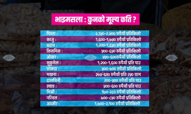 भाइमसलामा प्रयोग हुने ड्राइफ्रुटको मूल्य