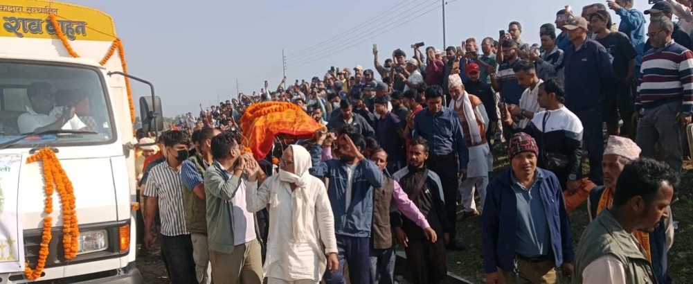 राति अबेर घरमा शव पुर्याइएकाले आज मंगलबार बिहान शवयात्रासहित महाकाली नदी किनारमा अन्त्येष्टि गरिएको हो ।