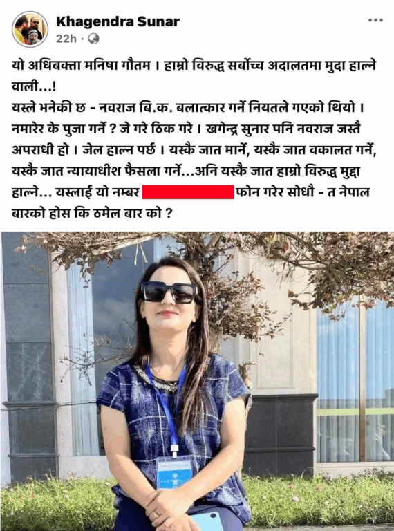 गौतम सर्वोच्च गएपश्चात् सुनारले उनलाई गालीगलौज गर्दै फेसबुकमा स्ट्याटस लेखेका थिए । त्यसबेला सुनारले गौतमलाई लक्षित गर्दै ‘तँ नेपाल बारकी होस कि ठमेल बारकी’ भन्दै स्ट्याटस लेखेका थिए । गौतमको फोटो र मोबाइल नम्बर फेसबुकमा राख्दै सुनारले लेखेका थिए, ‘यसलाई यो नम्बर ९८६०….फोन गरेर सोधौँ– त नेपाल बारको होस् कि ठमेल बार को ?’