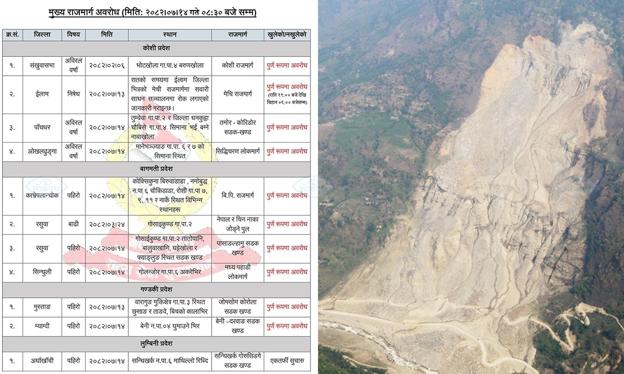 यसैगरी पाँचथरको याङवरक–३ र रामेछापको खाँडादेवी–१ खैरेनीघाटस्थित मध्य पहाडी लोकमार्गमा पनि सडक पूर्ण रूपमा बन्द भएको प्राधिकरणले जनाएको छ ।