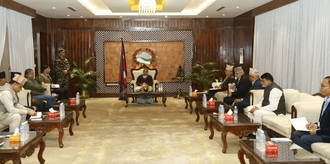 काठमाडौं । प्रधानमन्त्री र सातै प्रदेशका मुख्यमन्त्रीहरूको बैठक जारी छ ।