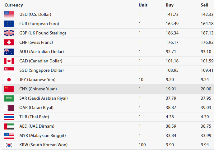 जापानी येन १० को खरिददर नौ रुपैयाँ २० पैसा र बिक्रीदर नौ रुपैयाँ २४ पैसा, चिनियाँ युआन एकको खरिददर १९ रुपैयाँ ९१ पैसा र बिक्रीदर २० रुपैयाँ , साउदी अरेबियन रियाल एकको खरिददर ३७ रुपैयाँ ७९ पैसा र बिक्रीदर ३७ रुपैयाँ ९५ पैसा, कतारी रियाल एकको खरिददर ३८ रुपैयाँ ८७ पैसा र बिक्रीदर ३९ रुपैयाँ ०३ पैसा कायम भएको छ ।