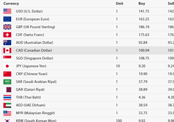 अष्ट्रेलियन डलर एकको खरिददर ९२ रुपैयाँ ८४ पैसा र बिक्रीदर ९३ रुपैयाँ २३ पैसा, क्यानेडियन डलर एकको खरिददर १०० रुपैयाँ ९४ पैसा र बिक्रीदर १०१ रुपैयाँ ३६ पैसा, सिङ्गापुर डलर एकको खरिददर १०८ रुपैयाँ ७५ पैसा र बिक्रीदर १०९ रुपैयाँ २१ पैसा तोकिएको छ ।