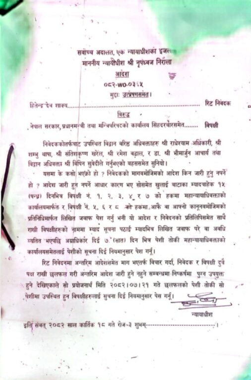 उनको रिट मंगलबार न्यायाधीश नृपध्वज निरौलाको एकल इजलासमा सुनुवाइ भएको थियो ।