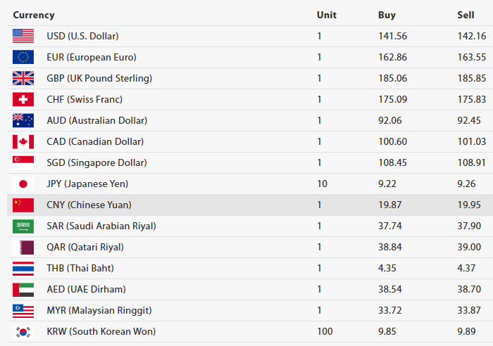 राष्ट्र बैंकले हङकङ डलर एकको खरिददर १८ रुपैयाँ २१ पैसा र बिक्रीदर १८ रुपैयाँ २९ पैसा, कुवेती दिनार एकको खरिददर ४६० रुपैयाँ ५७ पैसा र बिक्रीदर ४६२ रुपैयाँ ५२ पैसा, बहराइन दिनार एकको खरिददर ३७५ रुपैयाँ ४७ पैसा र बिक्रीदर ३७७ रुपैयाँ ०६ पैसा , ओमनी रियाल एकको खरिददर ३६७ रुपैयाँ ६७ पैसा र बिक्रीदर ३६९ रुपैयाँ २३ पैसा रहेको छ । भारतीय रुपैयाँ एक सयको खरिददर १६० रुपैयाँ र बिक्रीदर १६० रुपैयाँ १५ पैसा तोकेको छ ।