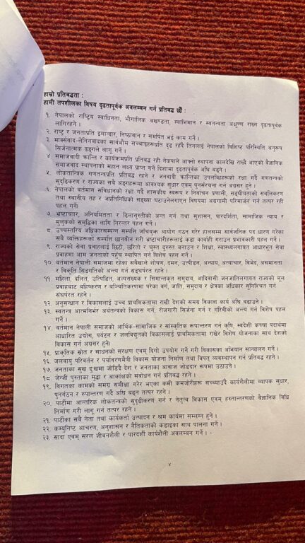काठमाडौंको भृकुटीमण्डपमा आयोजित कार्यक्रममा पार्टीको एकता घोषणा गर्दै नेता देव गुरुङले नवगठित पार्टीको २३ बुँदे घोषणापत्र सार्वजनिक गरेका हुन् ।