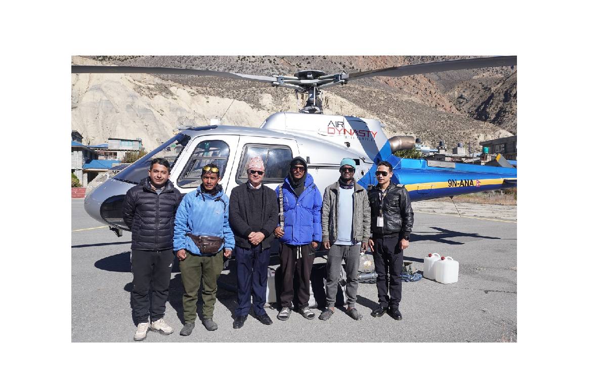 काठमाडौं । मुस्ताङ र डोल्पाको सिमाना छार्का भेरोलको हिउँमा फसेका दुई जना नेपाली पर्यटकको आज बिहान हेलिकप्टरमार्फत उद्धार गरिएको छ । जिल्ला प्रशासन कार्यालय मुस्ताङको समन्वयमा इन्द्रबक्स गणको नेपाली सेनाको सहयोगमा एयर डाइनोष्टिक हेलिकप्टरमार्फत सकुशल उद्धार गरिएको हो ।