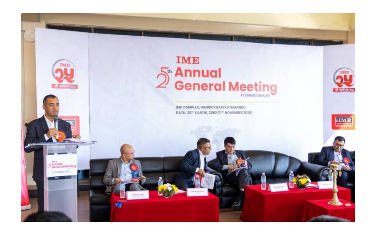 काठमाडौं । आइएमई लिमिटेडको २५औँ वार्षिक साधारण सभा सम्पन्न भएको । लिमिटेडका संस्थापक तथा अध्यक्ष हेमराज ढकालको अध्यक्षतामा साधारण सभामा मंगलबार काठमाडौंमा सम्पन्न भएको हो ।