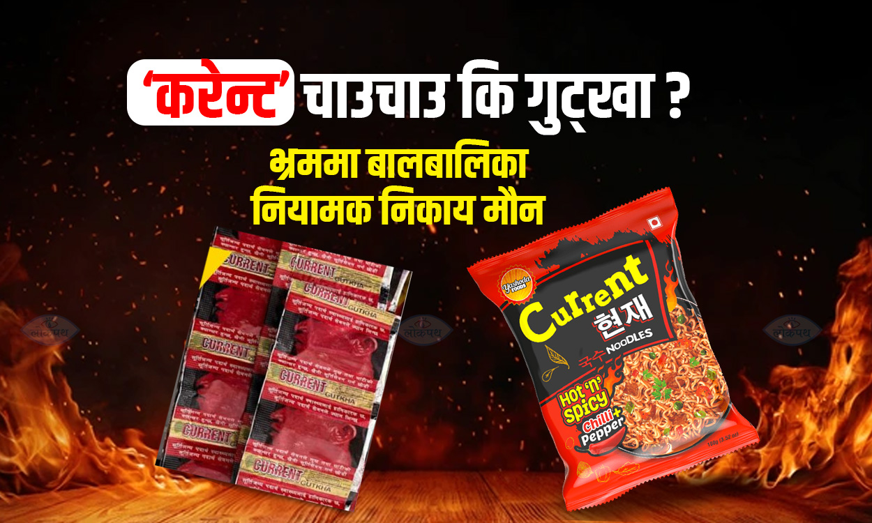 तर ‘मीठो’ स्वाद भन्दै बजारमा छ्यापछ्याप्ती पाइने त्यही करेन्टकै नामबाट गुट्खा पनि बजारमा उपलब्ध हुँदा बालबालिकामा कुन चाउचाउ हो र कुन गुट्खा हो भनेर बुझ्न पनि कठिन हुने अवस्था आएको छ । करेन्ट कै नाममा बजारमा गुट्खा पाइँदा बालबालिकाको मानसिकतामा पनि गम्भीर असर गर्न सक्ने विशेषज्ञहरूको चेतावनी छ ।