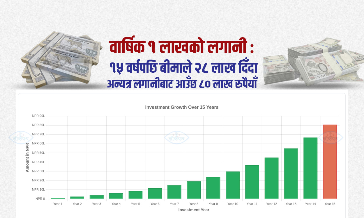 बीमामा वार्षिक १ लाख नतिरी अन्यत्र लगानी गरे १५ वर्षमा आउँछ ८० लाख रुपैयाँ