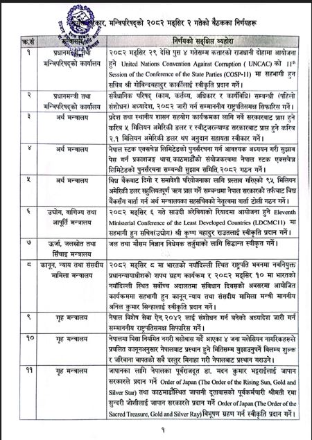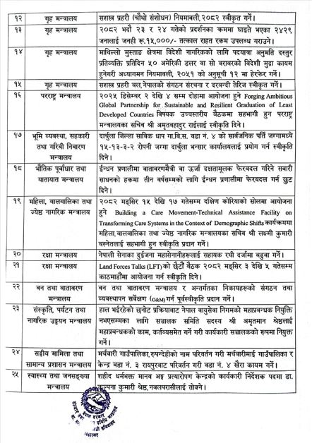 यस्ता छन् मन्त्रिपरिषद्का २५ निर्णयहरु