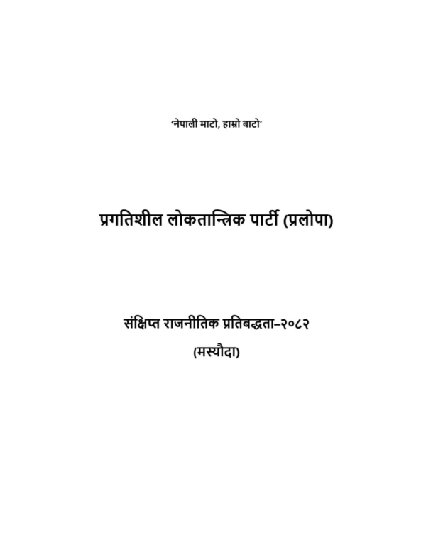 काठमाडौं । प्रगतिशील लोकतान्त्रिक पार्टी (प्रलोपा) ले तीन किसिमको विकास मोडेल अघि सारेको छ ।