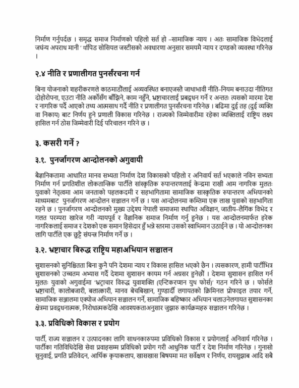 समृद्धिको तीन मोडल अन्तर्गत पार्टीले अघि सारेको प्रतिबद्धतामा भनिएको छ :