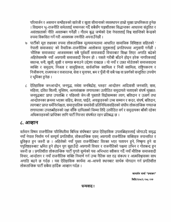 माओवादी छाडेर अन्य शक्तिहरुलाई समेत पार्टीमा जोडेका जनार्दन शर्माले पार्टीको प्रतिबद्धता सार्वजनिक गरेका हुन् ।