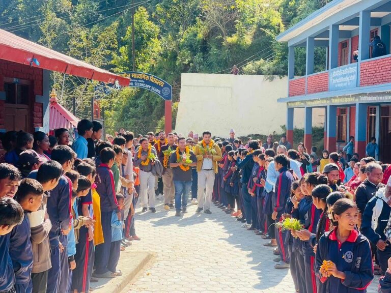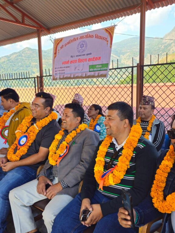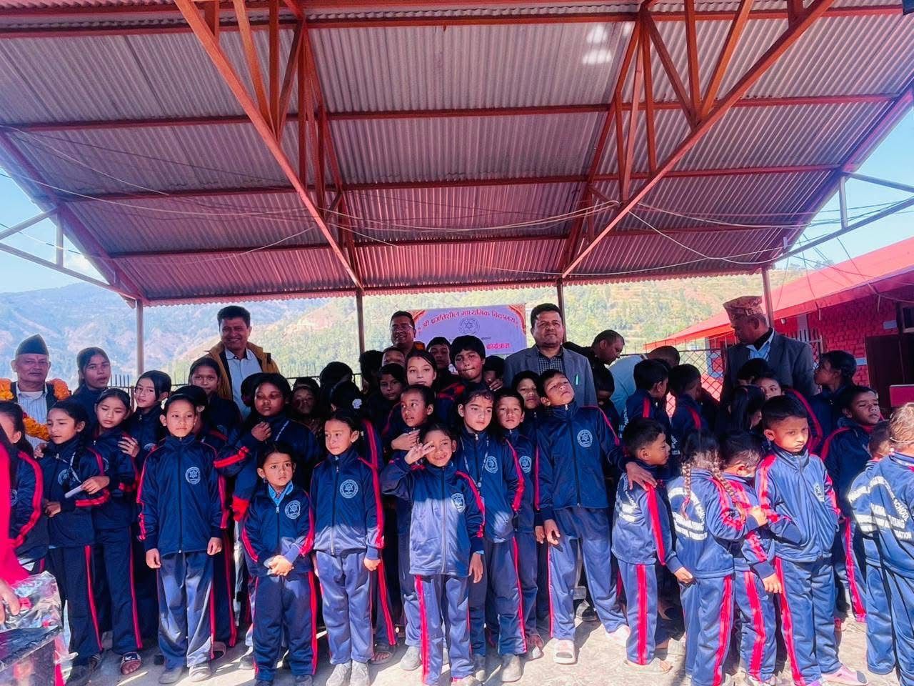 नविक कोइराला फाउण्डेशन अमेरिकाको सहयोगमा आइतबार विद्यालयमा आयोजित एक कार्यक्रममाबीच विद्यार्थीहरुलाई न्यायो कपडा वितरण गरिएको हो।