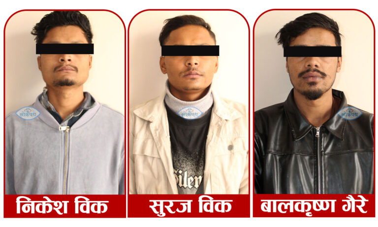 सन्दिग्धको खोजी गर्ने क्रममा बुधबार दिउँसो दुई युवालाई काठमाडौं उपत्यका अपराध अनुसन्धान कार्यालय (अपराध महाशाखा)कै प्रहरी टोलीले नियन्त्रणमा लियो । पक्राउ परेकाहरूको शरीर खानतलासी गर्दा उनीहरूको साथबाट प्रहरीले नै बोक्ने एक थान पेस्तोल भेटियो । यद्यपि पेस्तोलमा गोली भने थिएन । अनि पक्राउ परेकाहरू थिए मकवानपुरको बागमती गाउँपालिका ७ स्थायी ठेगाना भएका २५ वर्षीय निकेश विक र २५ वर्षीय नै सुरज बिक । नातामा उनीहरू काका बाउका छोराहरू थिए ।
