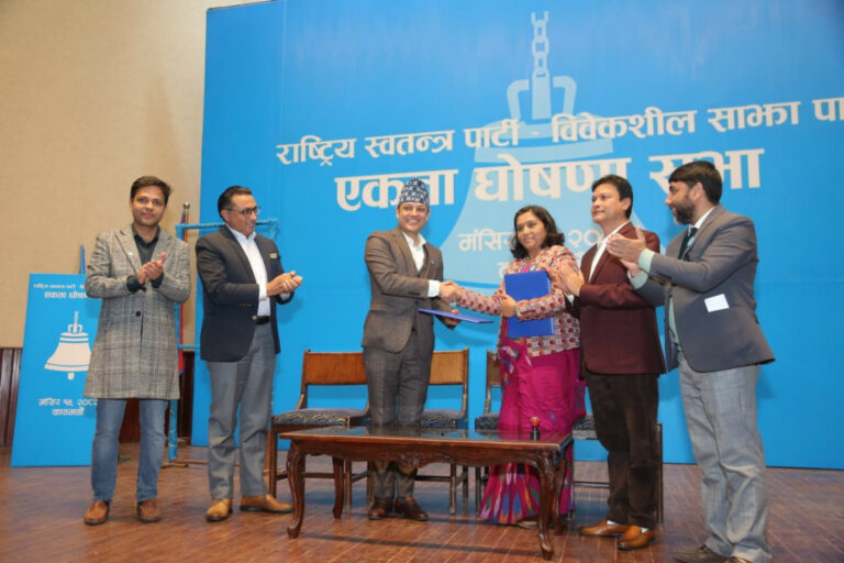 काठमाडौं । आफूलाई वैकल्पिक शक्ति दाबी गर्ने २ राजनीतिक शक्तिबिच एकता भएको छ ।