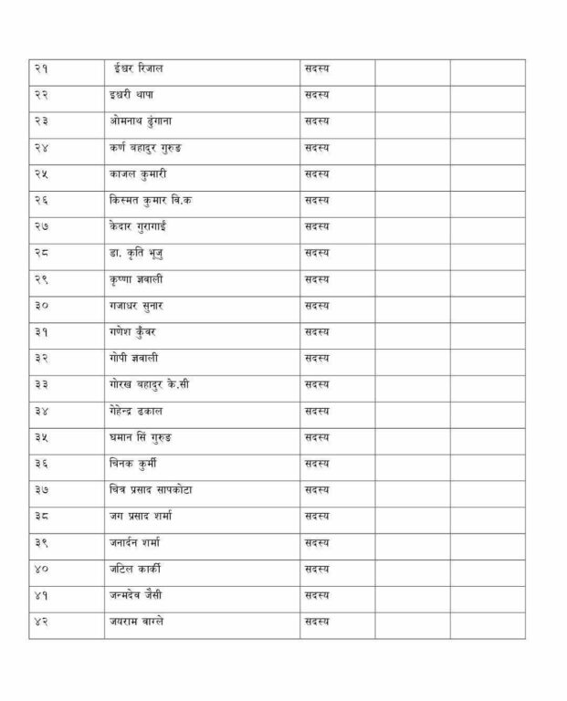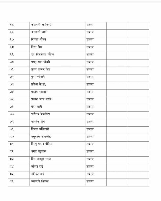 केन्द्रीय कमिटीमा डा. अच्युत भट्ट, अनिलकुमार शर्मा, अमित खनाल, ओम शर्मा, जटिल कार्की, राजकुमार शर्मा, रजमान तामाङ, जन्मदेव जैसी, मानुषी यमि भट्टराईलगायतको पनि नाम छ ।