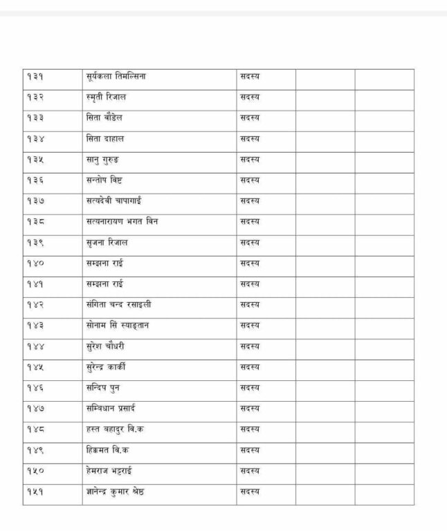 प्रलोपाद्वारा १५१ सदस्यीय केन्द्रीय कमिटी घोषणा (नामसहित)