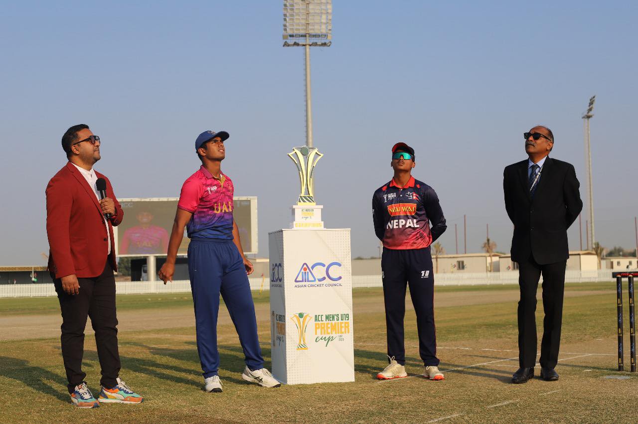 काठमाडौं । संयुक्त अरब इमिरेट्स (यूएई) मा जारी एसिसी पुरुष यु–१९ प्रिमियर कप क्रिकेटमा च्याम्पियन बन्ने लक्ष्यका साथ आयोजक यूएईसँग नेपाल भिडिरहेको छ । नेपालका कप्तान अशोक धामीले टस जितेर पहिले फिल्डिङ रोजेका छन् ।