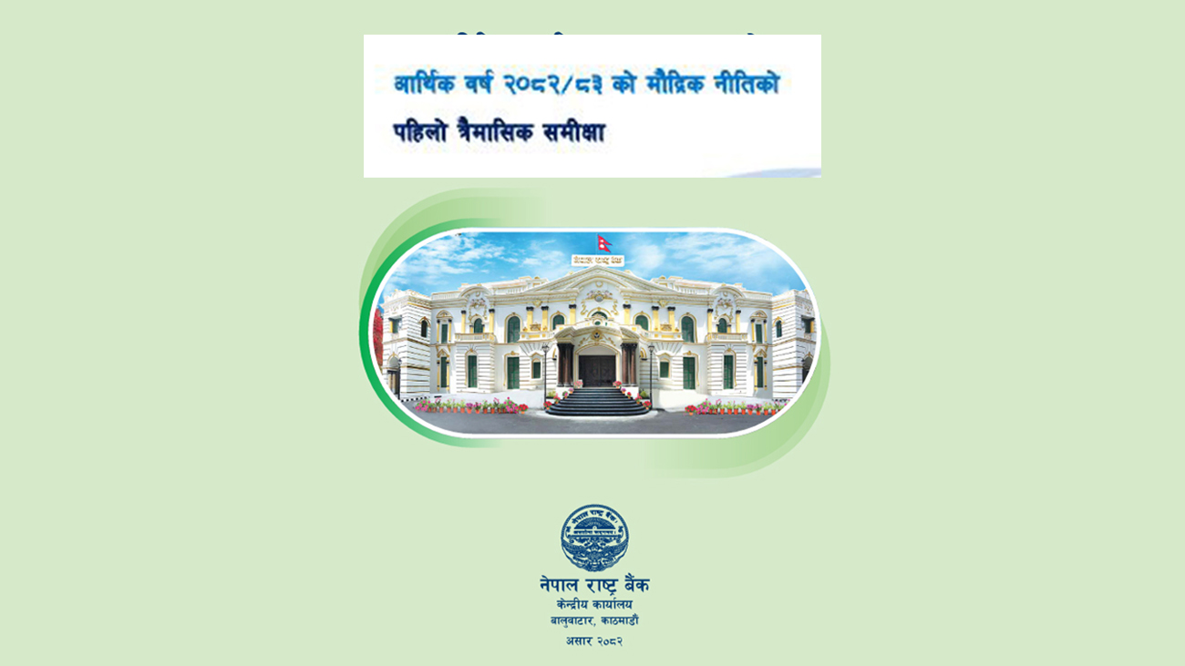 काठमाडौं । नेपाल राष्ट्र बैंकले आज सोमबार चालु आर्थिक वर्षको मौद्रिक नीतिको पहिलो त्रैमासिक समीक्षा सार्वजनिक गरेको छ ।