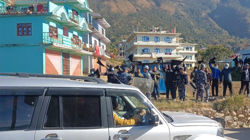 आज बिहान नेपाल एयरलाइन्सको जहाजमार्फत खलंगा विमानस्थल पुगेका सोही जिल्लाका विघटित प्रतिनिधिसभा सदस्य शर्मालाई विमानस्थलबाट बाहिरिँदा केही युवाले सडक किनारमै उभिएर कालो झन्डा देखाउँदै विरोध जनाएका थिए ।