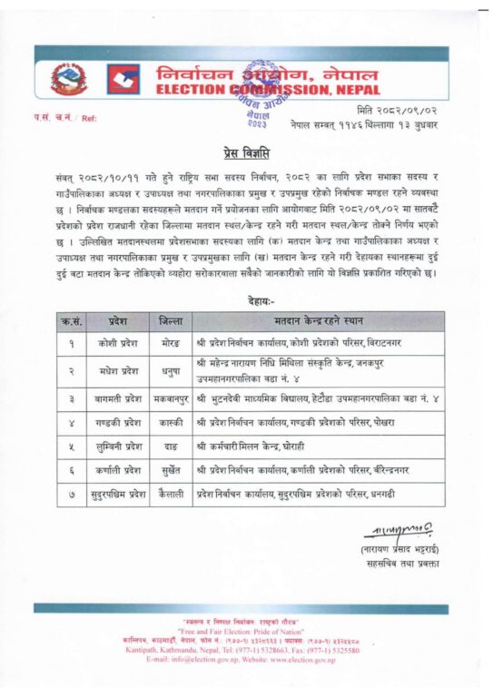 राष्ट्रिय सभा निर्वाचन : सात वटै प्रदेशमा तोकियो मतदान केन्द्र [सूचीसहित]