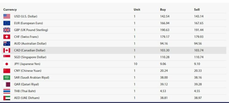 काठमाडौं । नेपाल राष्ट्र बैंकले आज (आइतबार) का लागि विदेशी मुद्राको विनिमयदर निर्धारण गरेको छ । आजका लागि निर्धारित विनिमयदरअनुसार अमेरिकी डलर एकको खरिददर १४२ रुपैयाँ ५४ पैसा र बिक्रीदर १४३ रुपैयाँ १४ पैसा निर्धारण गरिएको छ ।