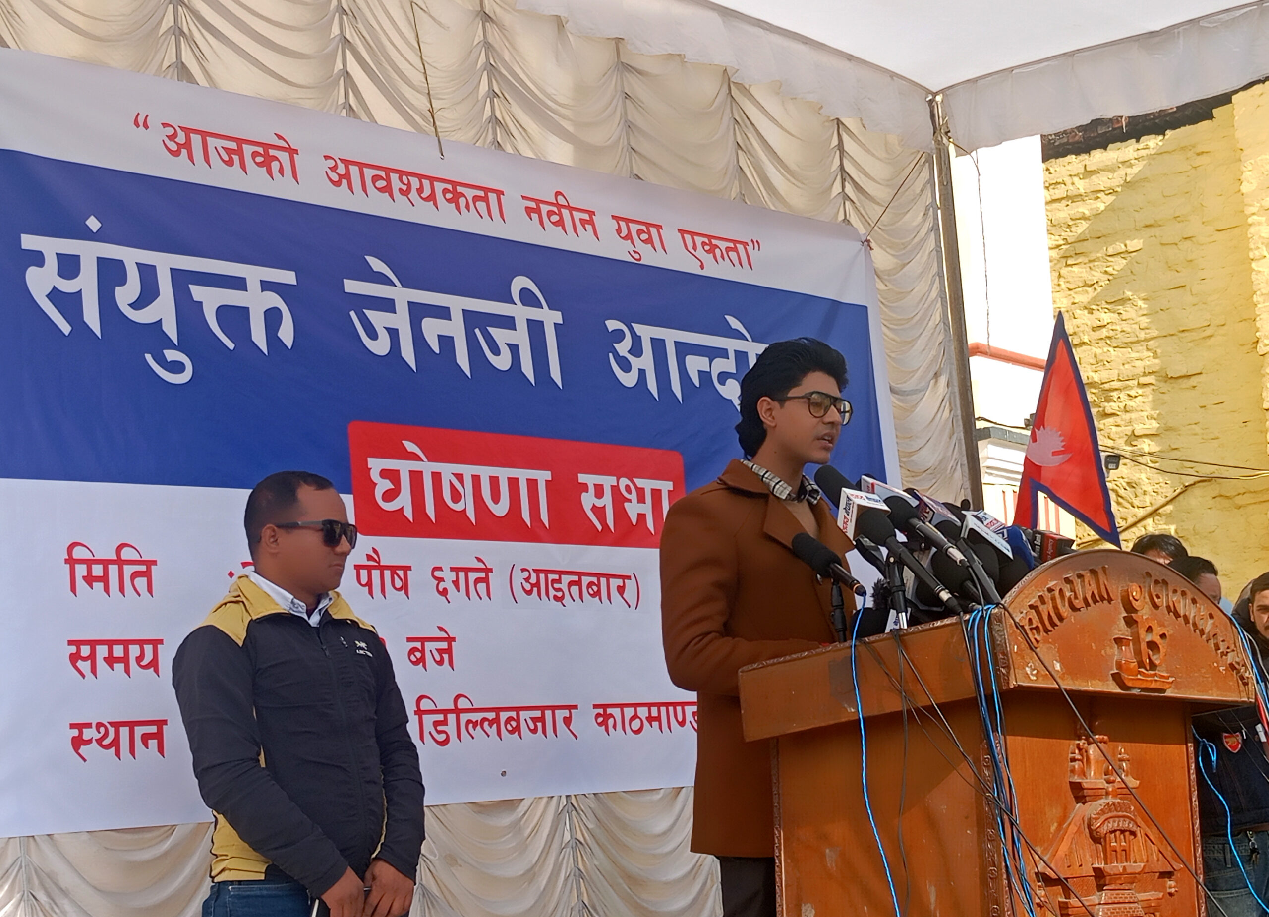 काठमाडौं । जेनजी अगुवा मिराज ढुंगाना समूहले सर्वपक्षीय सरकार गठनको मागसहित सोमबार (भोलि) बाट देशभर आन्दोलनको घोषणा गरेका छन् ।