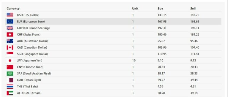 यस्तै, युरोपियन युरो एकको खरिददर १६७ रुपैयाँ ९८ पैसा र बिक्रीदर १६८ रुपैयाँ ६८ पैसा, युके पाउण्ड स्ट्रलिङ एकको खरिददर १९२ रुपैयाँ ३१ पैसा र बिक्रीदर १९३ रुपैयाँ ११ पैसा, स्वीस फ्रयाङ्क एकको खरिददर १८० रुपैयाँ ४६ पैसा र बिक्रीदर १८१ रुपैयाँ २२ पैसा कायम गरिएको छ ।