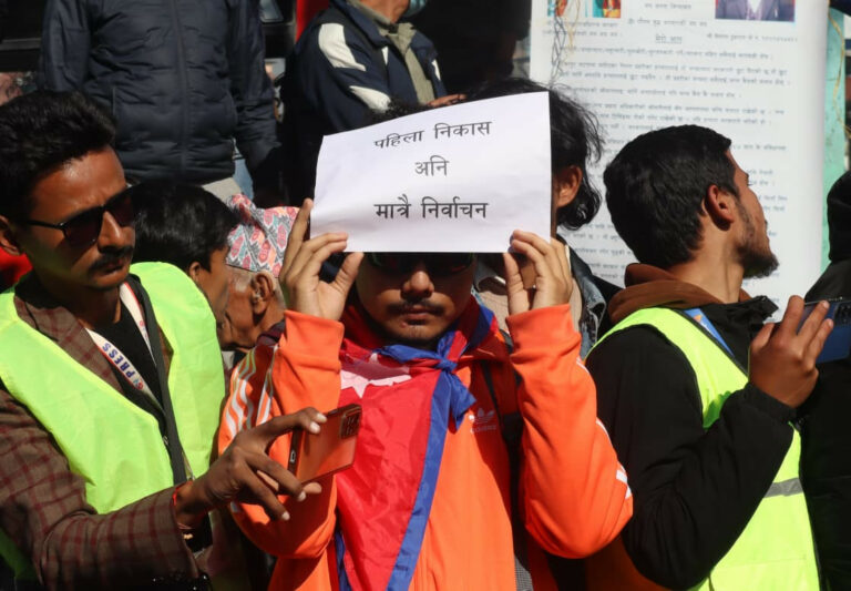 प्रदर्शनकारीहरूले ‘जेनजीको माग हरायो, निर्वाचन भनी करायो’, ‘अतिभो राजनीतिक खेल, आमा सरकार फेल’, ‘घाइतेका माग पूरा गर’, ‘जेनजीको माग चुनाव होइन सुशासन हो’ लगायत नारा लेखिएका प्लेकार्ड बोकेका छन् ।
