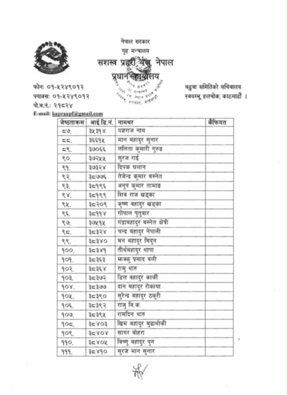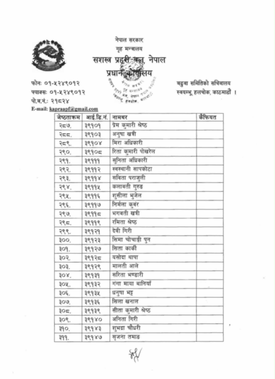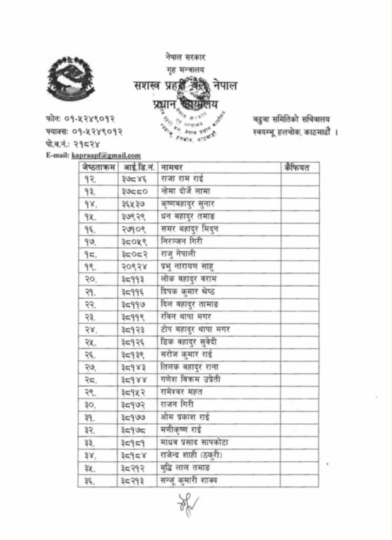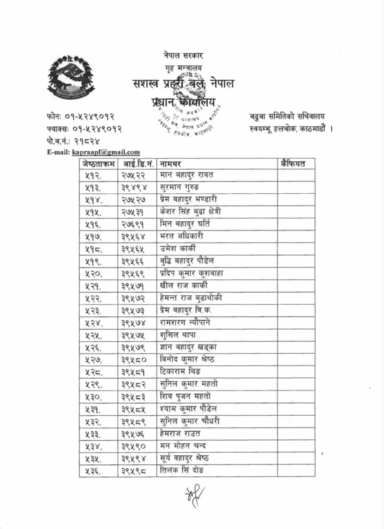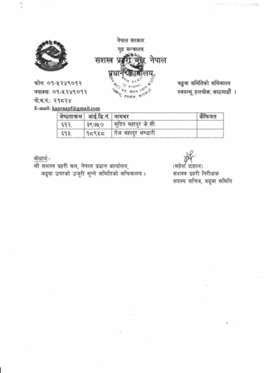 सशस्त्र प्रहरी नियमावली, २०७२ को नियम ३९ को उपनियम (१) बमोजिम बढुवाका लागि सिफारिस गरिएको समितिले जनाएको छ । त्यसो त बढुवा सिफारिसमा चित्त नबुझेमा ७ दिनभित्र कानुन अनुसार समितिमा उजुरी दिन समेत भनिएको छ ।