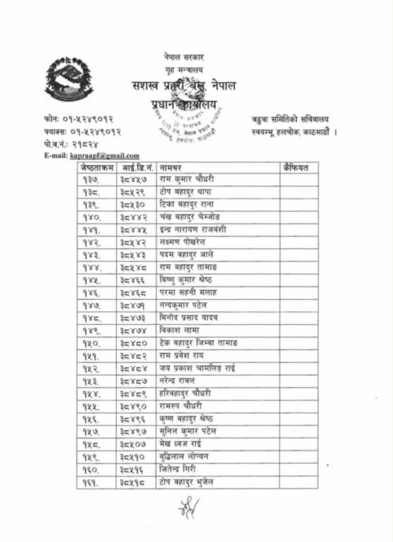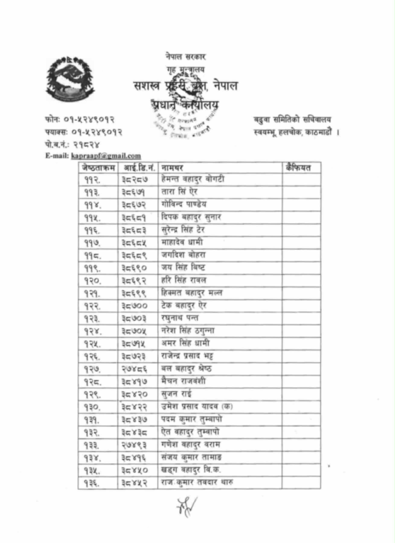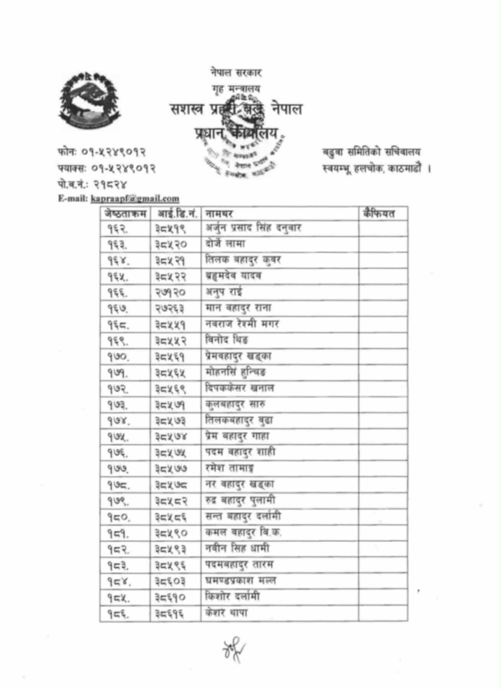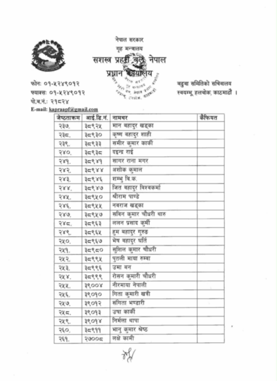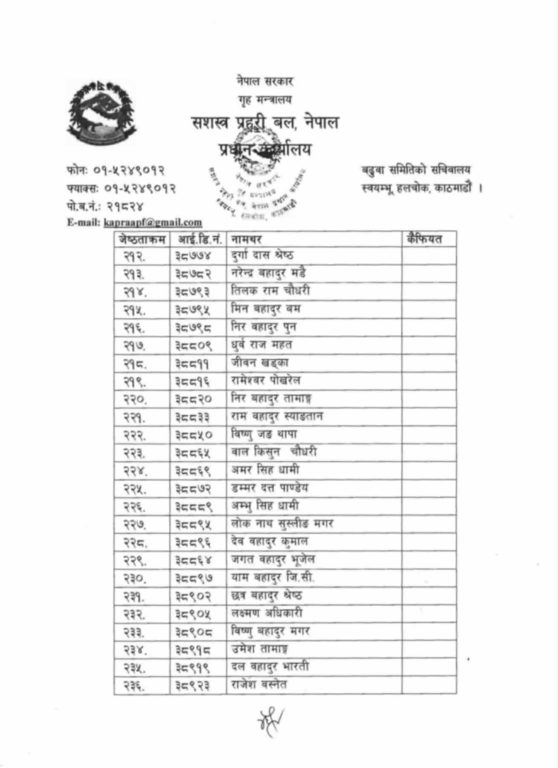 एकैपटक सशस्त्रका ६१३ हवल्दारलाई वरिष्ठ हवल्दारमा बढुवा सिफारिस [सूचीसहित]