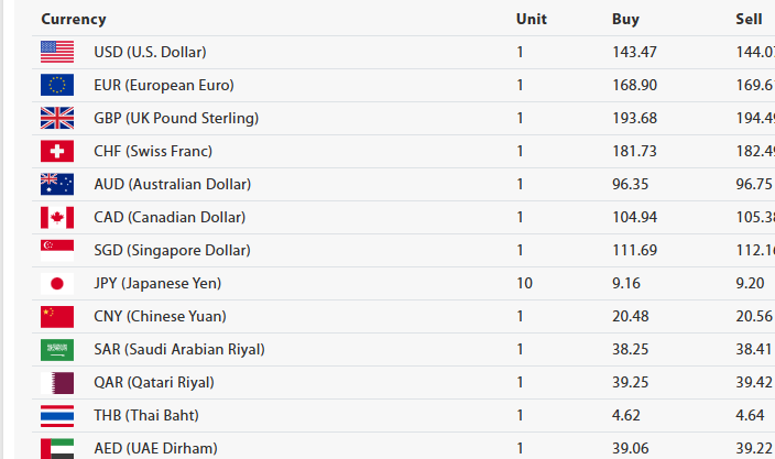 जापानी येन १० को खरिददर नौ रुपैयाँ १६ पैसा र बिक्रीदर नौ रुपैयाँ २० पैसा, चिनियाँ युआन एकको खरिददर २० रुपैयाँ ४८ पैसा र बिक्रीदर २० रुपैयाँ ५६ पैसा, साउदी अरेबियन रियाल एकको खरिददर ३८ रुपैयाँ २५ पैसा र बिक्रीदर ३८ रुपैयाँ ४१ पैसा, कतारी रियाल एकको खरिददर ३९ रुपैयाँ २५ पैसा र बिक्रीदर ३९ रुपैयाँ ४२ पैसा कायम भएको छ ।