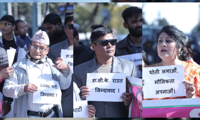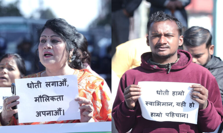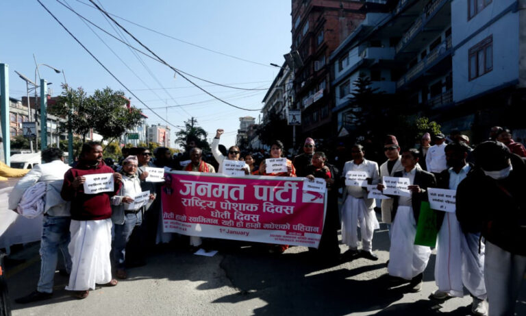 बिहीबार अंग्रेजी नयाँ वर्षको अवसर पारेर धोती दिवस मनाएको हो । पार्टीका नेता तथा कार्यकर्ताहरू धोती लगाएर काठमाडौंको माइतीघर मण्डलामा भेला भएका थिए ।