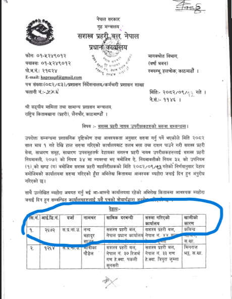 सशस्त्रको सरुवा र मिसनमै चलखेल : डीएसपी नन्दबहादुर साउदलाई व्यवस्थापन गर्न खोज्दा अर्का डीएसपी असन्तुष्ट