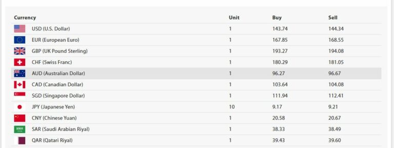 अष्ट्रेलियन डलर एकको खरिददर ९६ रुपैयाँ २७ पैसा र बिक्रीदर ९६ रुपैयाँ ६७ पैसा, क्यानेडियन डलर एकको खरिददर १०३ रुपैयाँ ६४ पैसा र बिक्रीदर १०४ रुपैयाँ ०८ पैसा, सिङ्गापुर डलर एकको खरिददर १११ रुपैयाँ ९४ पैसा र बिक्रीदर ११२ रुपैयाँ ४१ पैसा तोकिएको छ ।