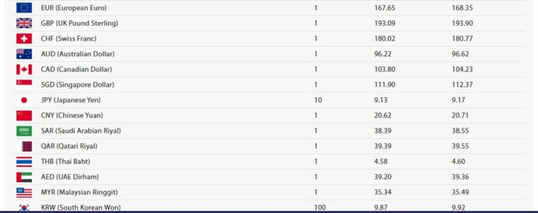 यस्तै, युरोपियन युरो एकको खरिददर १६७ रुपैयाँ ६५ पैसा र बिक्रीदर १६८ रुपैयाँ ३५ पैसा, युके पाउण्ड स्ट्रलिङ एकको खरिददर १९३ रुपैयाँ ०९ पैसा र बिक्रीदर १९३ रुपैयाँ ९० पैसा, स्वीस फ्रयाङ्क एकको खरिददर १८० रुपैयाँ ०२ पैसा र बिक्रीदर १८० रुपैयाँ ७७ पैसा कायम गरिएको छ ।