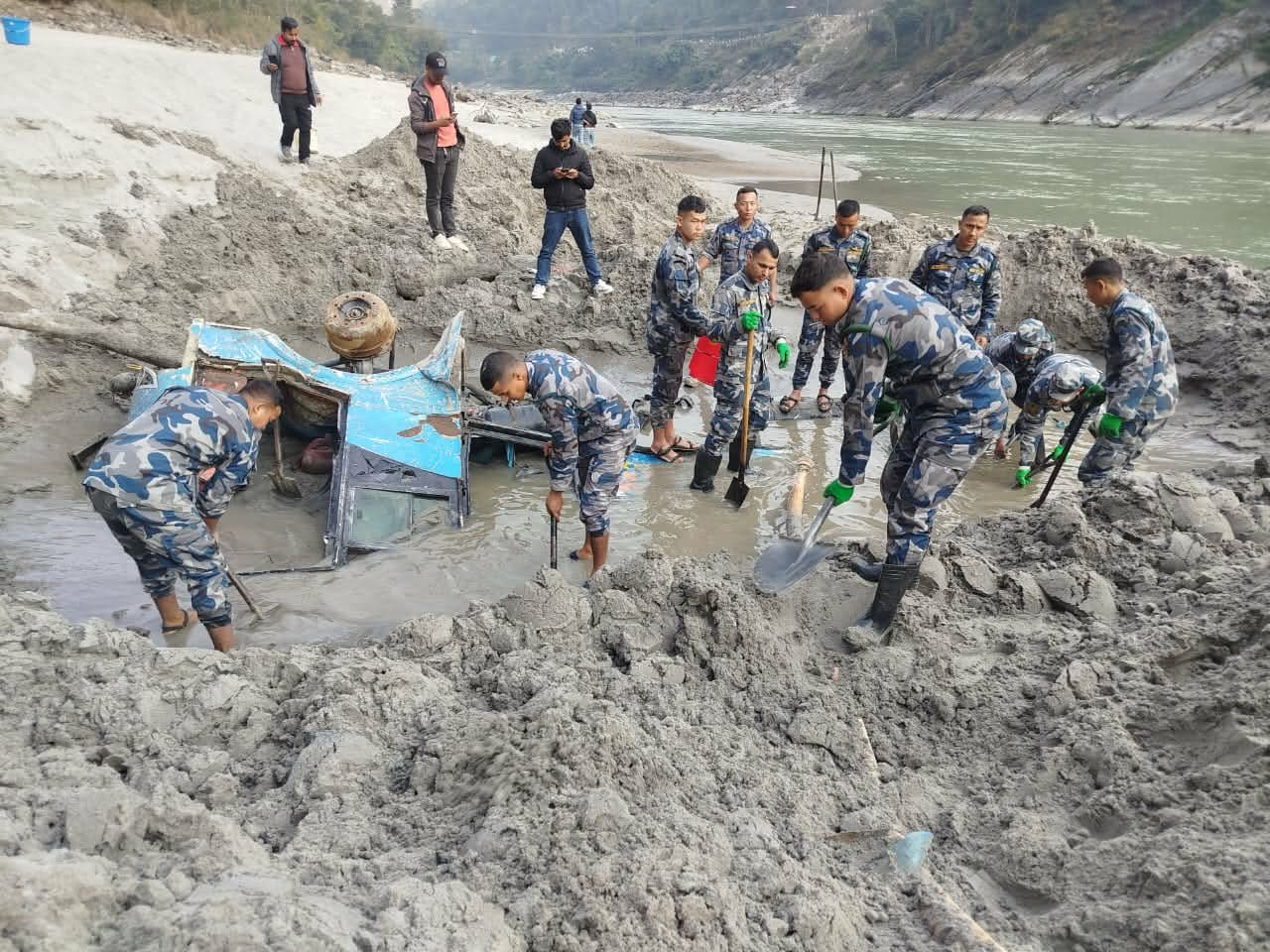 तनहुँ जिल्लाको आबुखैरेनी गाउँपालिका–५ द्धोन्द्राङ बेसी नजिकै त्रिशुली नदिको किनारमा पुरिएको अवस्थामा सो गाडीको पार्ट्सपुर्जा फेला परेको थियो ।