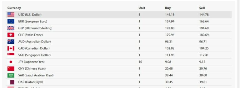 काठमाडौं । नेपाल राष्ट्र बैंकले आजका लागि विदेशी मुद्राको विनिमयदर निर्धारण गरेको छ । निर्धारित विनिमयदरअनुसार अमेरिकी डलर एकको खरिददर १४४ रुपैयाँ १८ पैसा र बिक्रीदर १४४ रुपैयाँ ७८ पैसा तोकिएको छ ।