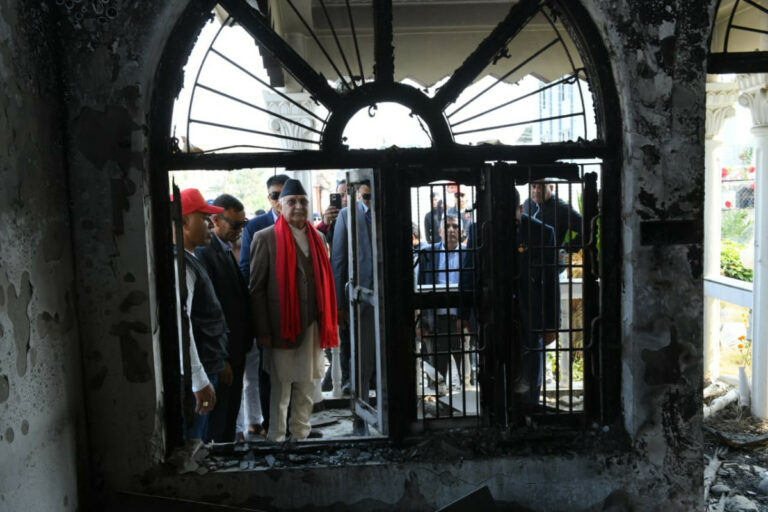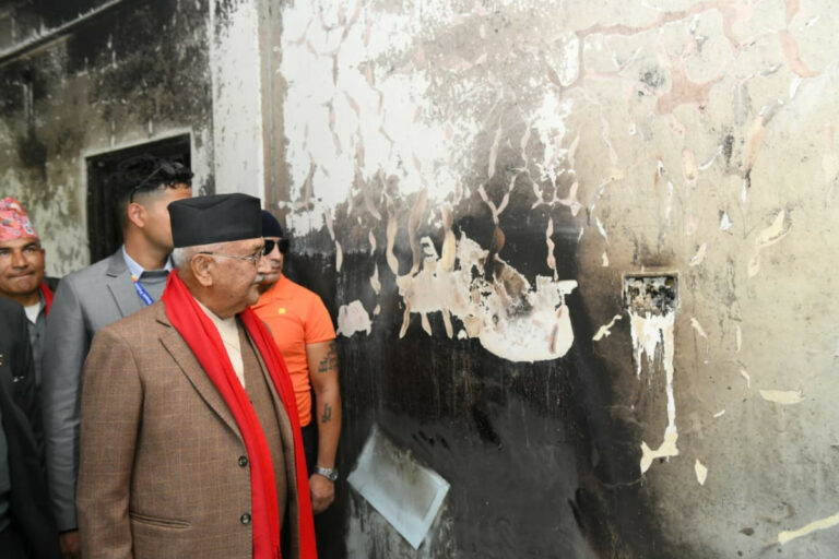 काठमाडौं । नेकपा (एमाले)का अध्यक्ष तथा पूर्व प्रधानमन्त्री केपी शर्मा ओलीले झापा निर्वाचन क्षेत्र नम्बर ५ मा जेनजी आन्दोलनका क्रममा आगजनी र तोडफोड भएका संरचनाहरूको निरीक्षण गरेका छन् ।