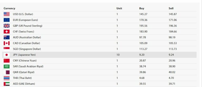 काठमाडौं । नेपाल राष्ट्र बैंकले आजका लागि विदेशी मुद्राको विनिमयदर निर्धारण गरेको छ । निर्धारण गरिएको विनिमयदर अनुसार अमेरिकन डलर एकको खरिददर १४५ रुपैयाँ २७ पैसा र बिक्रीदर १४५ रुपैयाँ ८७ पैसा तोकिएको छ ।